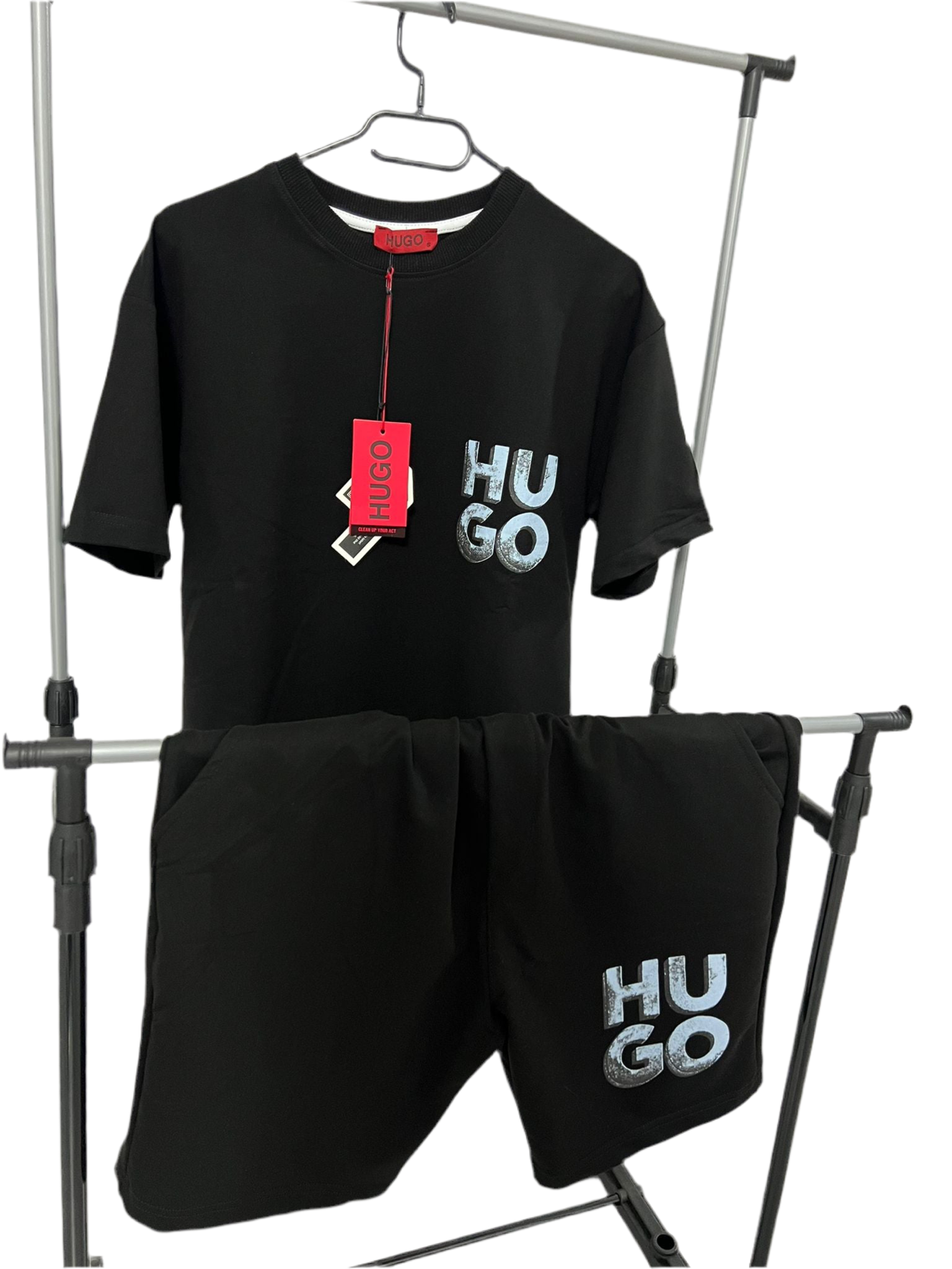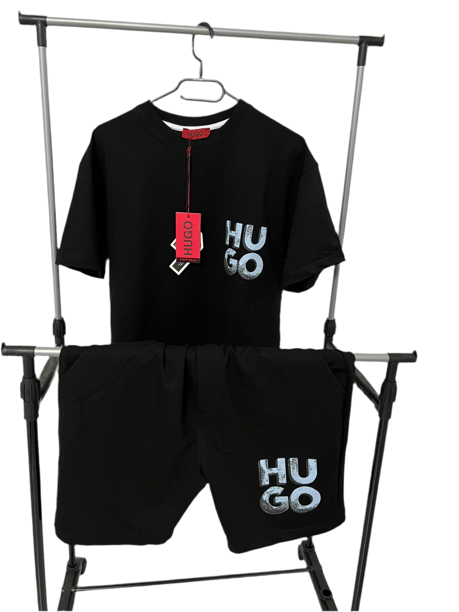Compleul scurt Hugo este alegerea ideală pentru zilele călduroase, combinând un design modern cu confortul oferit de materiale ușoare. Format din tricou și pantaloni scurți asortați, este perfect pentru un look casual, relaxat și stilat.