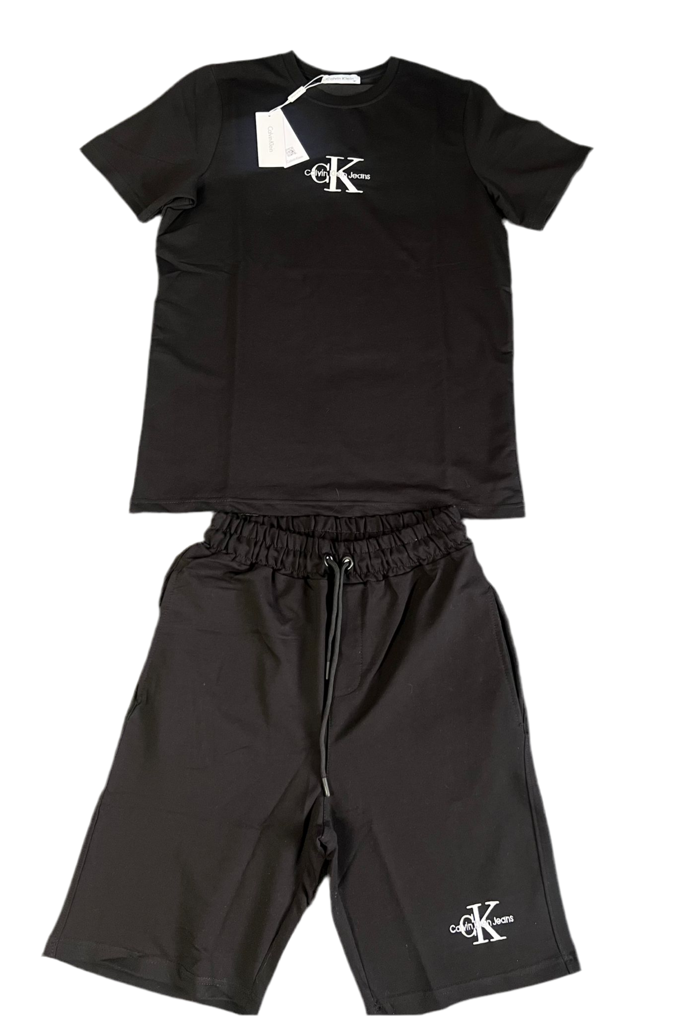 Compleu scurt Calvin Klein Jeans negru, din bumbac moale, cu logo subtil. Stil casual, ideal pentru vară.