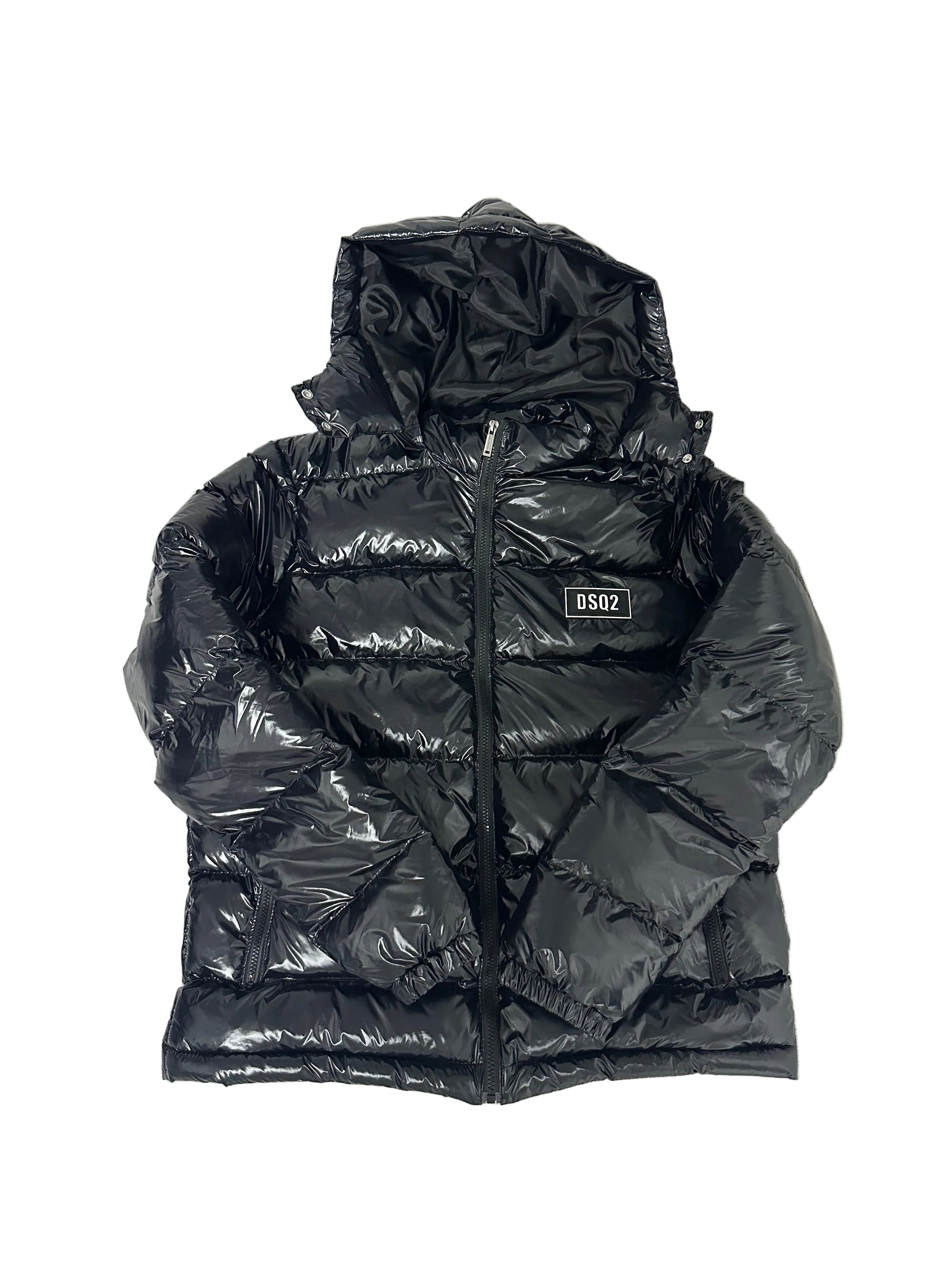 Geaca DSQ2 neagră lucioasă cu glugă